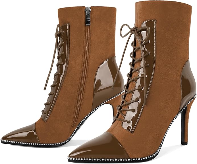 👠 Heel Height: 3.7" (9.5cm) stiletto heels elongate your legs and create a sleek silhouette. Perfect shaft height makes these booties stunning with dresses, skirts, jeans, or shorts.