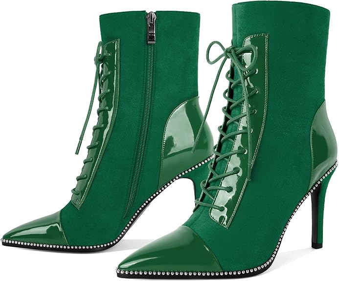 ✨ Fashionable Design: Sexy pointed toe, chic cap toe, sturdy stiletto heel, and silver bead chain detailing make these ankle boots effortlessly stylish and modern.