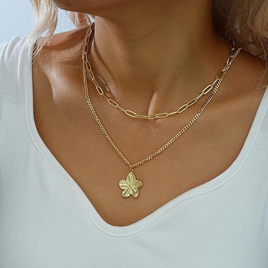 Crafted from durable brass with a 14K gold-plated finish, this necklace offers a refined appearance with long-lasting shine. It is designed to resist tarnishing, maintain its color, and provide a smooth, comfortable feel for daily wear.